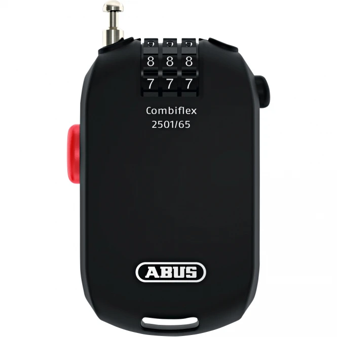 With self-winding cable. The numeric code is self-adjustable and changeable. Cable length: 65 cm, cable Ø: 1.6 mm. Weight: 55.5 g.