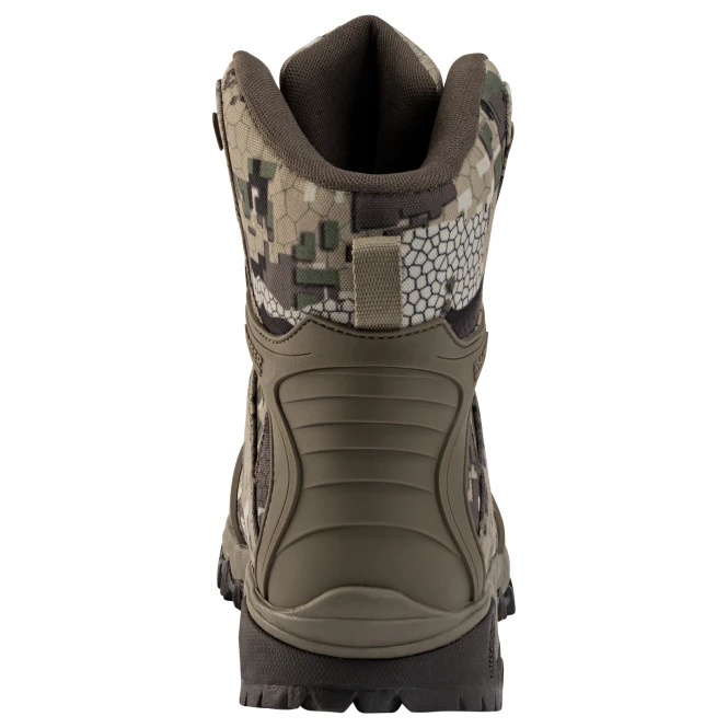 Highly fashionable design and strong function combined in this shoe. Thanks to the materials used and their properties, this lace-up boot is robust, durable and meets the demands placed on a modern outdoor shoe. The integrated AlmTex® membrane is waterproof and particularly robust. The heel and toe areas are excellently reinforced and additionally protected against impacts by rubber applications. The tongue and the reinforced area at the ankle and shaft are comfortably padded and have breathable mesh fabric on the inside. Eyelets and pull hooks allow for secure lacing. The treaded sole is particularly slip-resistant and reliable off-road. Colour: camou. Upper: textile with rubber applications, lining and cover sole: textile, outsole: other material.