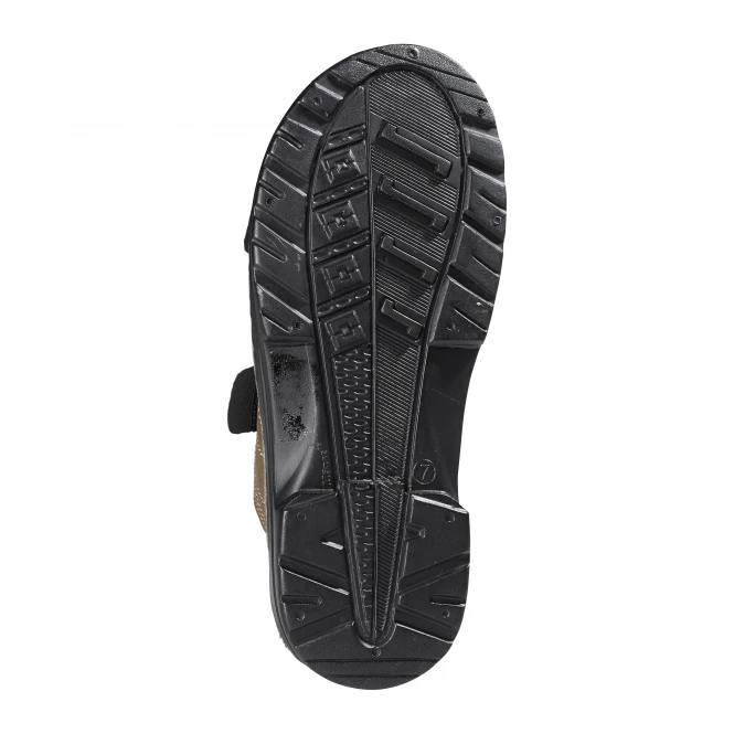 Practical leather slipper, perfect for the hunting lodge or at home. Easy to slip on and feel comfortable. The width at foot back can be adjusted by velcro. With non-slip sole. Colour: brown/black. Upper material: leather, lining and inner sole: textile, sole: other material.