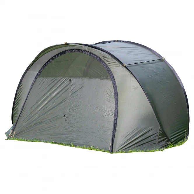 First-class pop up tent for a quick carp session, set up within seconds. A flat transport size as well as low weight are the advantages of this tent. After assembly it is hardly distinguishable from a classic bivvy. With integrated mesh pocket for storage of small parts and mosquito window front + back. Dimensions: 175 x 235 x 120 cm. Transport dimensions: 85 cm x 2 cm (rounded). Weight: 3,4 kg. Incl. 12 Metal-End Tent Pegs. Tent material: 100% nylon. Material transport bag: 100% nylon.