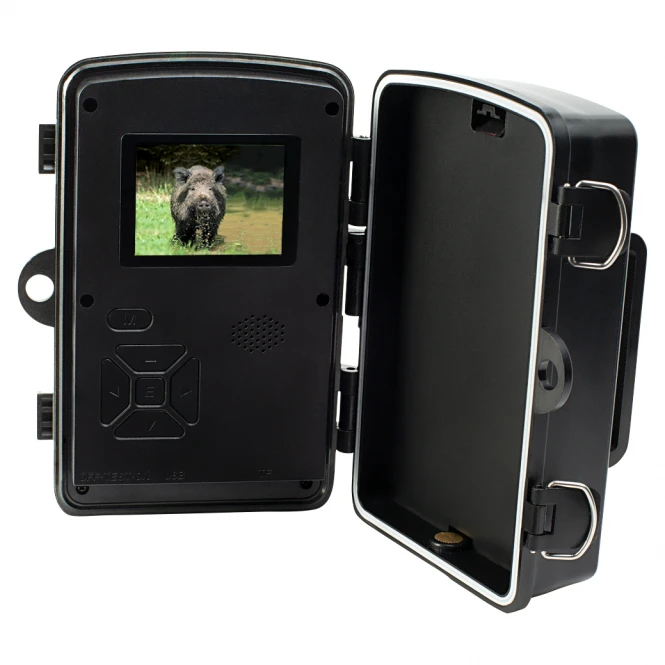 16 Mega-Pixel colour CMOS camera with excellent image quality and easy operation. With photo and video function (10 sec.- 10 min). Technical data: max. IR distance: 20 m, LCD screen: 2″ TFT colour screen, for TF cards up to 32 GB, time lapse: 1 min. – 24 hours, standby time: up to 6 months. Interface: USB, TF card slot, 6V DC external (6V/2A input with 4.0×1.7mm connector. Requires: 8 x AA batteries (please order separately). Suitable memory card e.g. B. Art. 160206 MicroSD 32GB, not included.