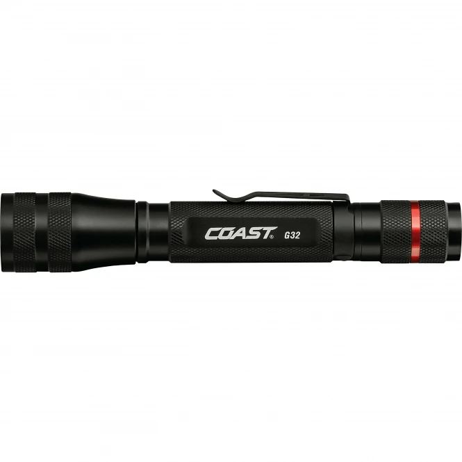 Robust, focusable flashlight for use at close and long range. Practical pocket clip ensures protection and a secure hold in the pocket. Luminosity 355/110 lumens, range 132/73 m. Light time 4,75/19 h. Length: 16,3 cm. Weight: 150 g. Incl. 2 x AA battery.