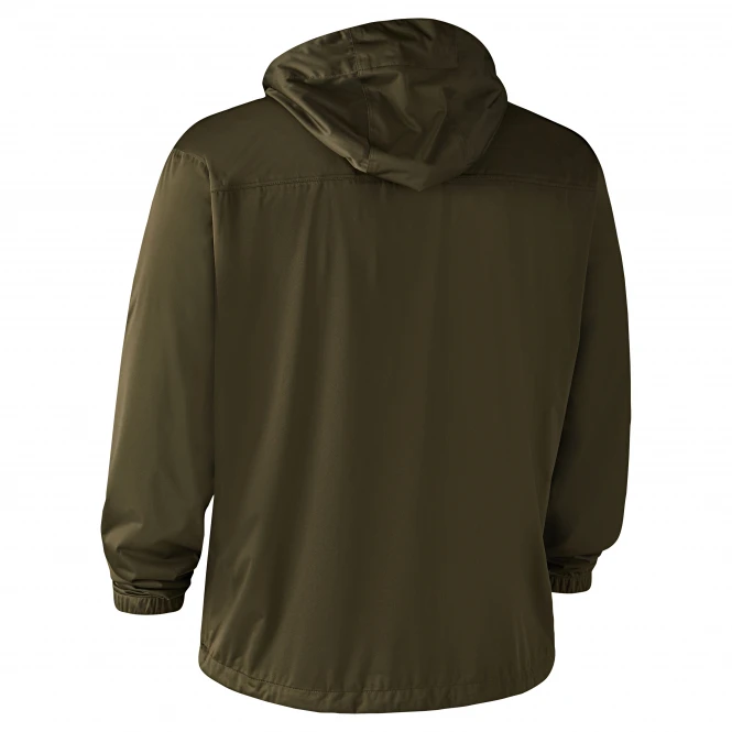 Extremely lightweight, thin and stretchy rain jacket with integrated hood that provides ultimate protection. A zipper with snap closure in the middle, two front pockets with concealed zippers, adjustable cuffs with elastic, tape and Velcro with drawstring at the bottom hem provide excellent protection against moisture. Membrane (Deer-Tex® Performance Shell). Colour: oliv Material: 100 % polyester.