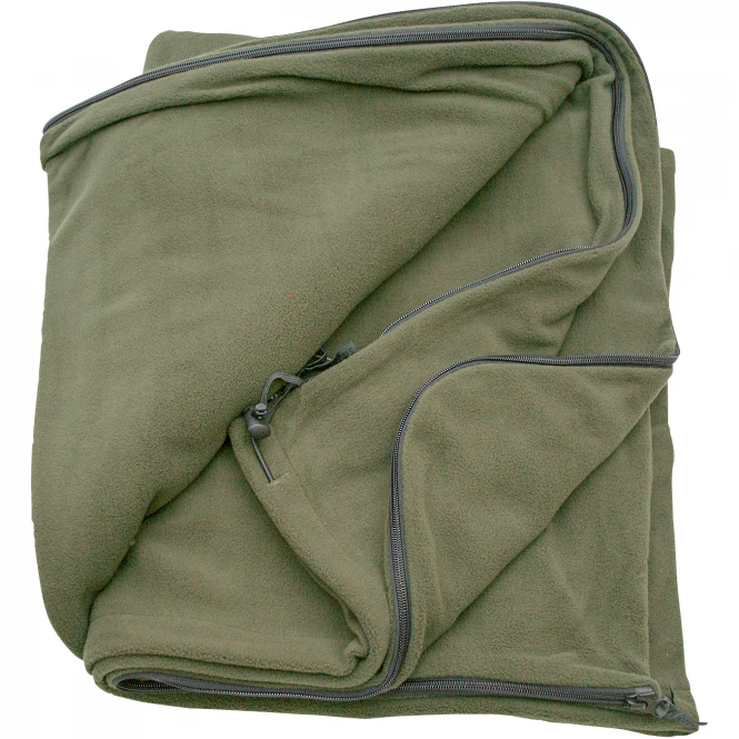 This fleece blanket can also be used as a sleeping bag thanks to the side zipper. Incl. transport bag. Dimensions: 180 x 160 cm. Material: 100% polyester.