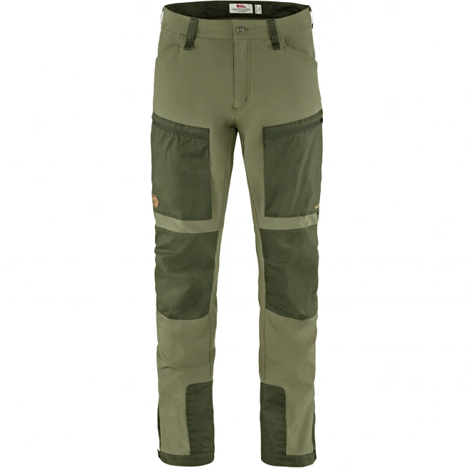 Ideal all-round trekking pants for spring and autumn with low weight and high freedom of movement. Made of double woven stretch fabric that dries quickly and protects the legs in rough terrain. Minimalist design with slim legs, leg pockets and knees reinforced with G-1000® Lite Eco Stretch for extra durability. Colour: laurel green/deep forest. Material: 89% polyamide, 11% elastane, G-1000® Lite Eco Stretch: 65% polyester, 35% cotton. Contains non-textile parts of animal origin.