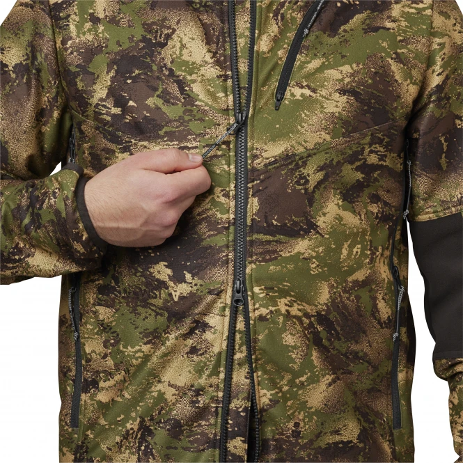 Best camouflaged in a modern cut. The pleasant stretch material offers ideal wearing comfort. With ventilation zippers under the armpits for air circulation and the breathable and moisture-wicking properties additionally prepare a comfortable wearing climate. With radio pocket on the left chest with double zipper for easy access and side pockets with zipper. The bottom hem is adjustable by drawcord. The thumbholes and elastic at the cuffs provide additional protection from the cold and wet. Colour: AXIS MSP®Forest. Material: 100% polyester.