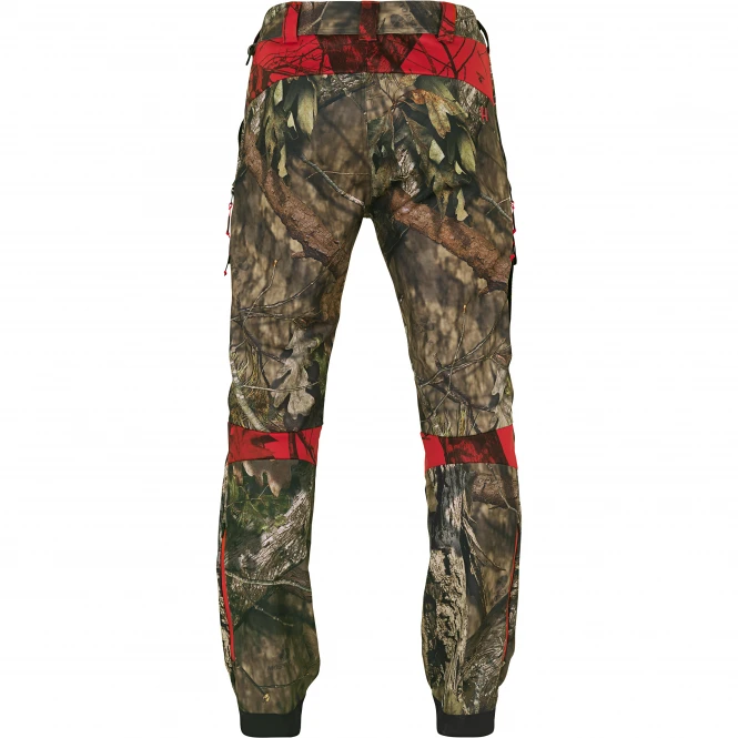 The robust, yet lightweight stretch material is comfortable to wear and due to its breathability and quick-drying and moisture-wicking properties, a pleasant wearing climate is created. Additional ventilation zippers support this. Sufficient storage space is provided by the easily accessible front pockets and the spacious thigh pockets with flaps and snap fasteners. There are cartridge holders on the right thigh pocket and a mesh pocket for cell phone in the left thigh pocket. With double snap closure on the waistband and D-ring. Colour: MossyOak®Break-Up Country®/MossyOak®Red. Material: 100% polyester.