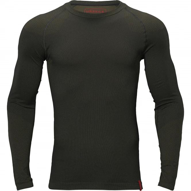 The long-sleeved Härkila Base Active undershirt is made of a stretchy and quick-drying blend. In addition, the fabric has been treated with Polygiene® to prevent odors and bacteria. The advantages: The product needs to be washed less often, you can wash it at lower temperatures and it is more durable – all factors that also benefit the environment. The undershirt is not only quick-drying, but also has particularly breathable sections on the collar, shoulders, under the arms and forearms. In addition, the shirt is moisture-wicking. This ensures a comfortable feeling even during high activity. The undershirt has an active, close fit. Colour: dark willow green. Material: 94 % Polyamid, 6 % Elasthan.