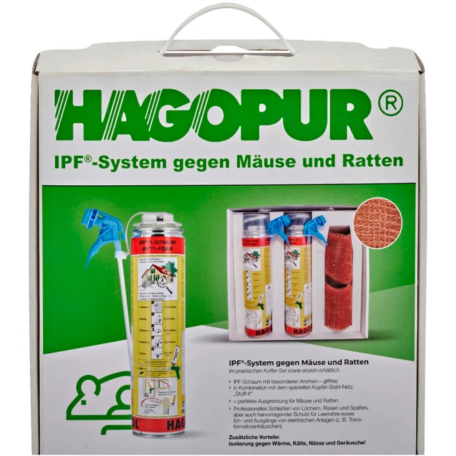 The special feature of IPF® foam is that the special, resistant polyurethane foam with pronounced compressive strength contains a natural aromatic substance that keeps insects of all kinds from entering. This is therefore an exclusion measure with the added benefit of insulation against heat, cold, noise, sound and moisture; an indispensable product especially in countries with warm, humid climates and thus acute pest problems. In conjunction with the attached copper steel mesh, mice and rats are also successfully deterred from entering.