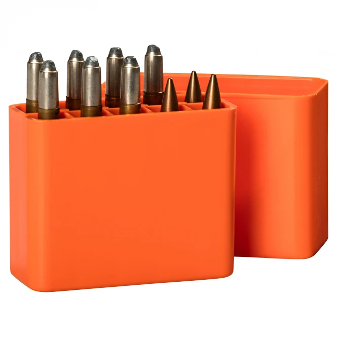 High-quality PVC bag cartridge box for rifle cartridges. Capacity: space for 10 cartridges. Colour: orange.