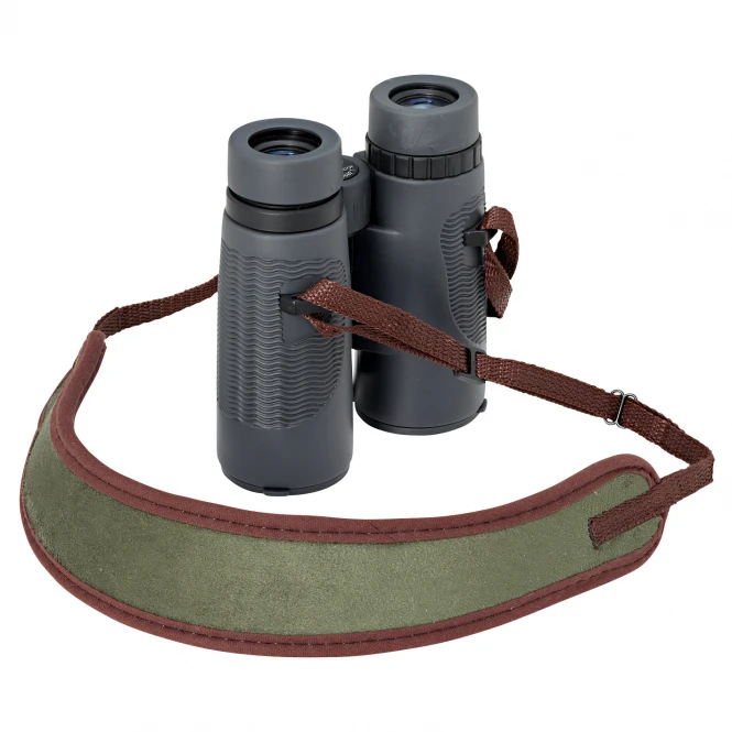 Also heavy binoculars can be worn easily with this broad optics chain. Dimensions of the neck pad: 5 x 40 cm. Colour: green/brown. Material pad: 100% neoprene, surface: 100% cotton, chain: 100% polyester.