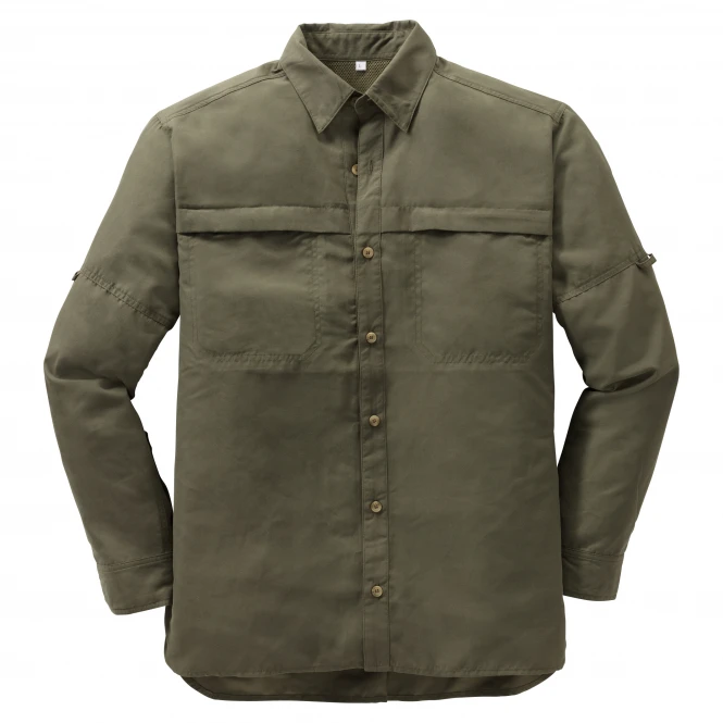 Long sleeve shirt especially for the hot days. An air slot on the back provides cooling even on hot days. Two breast pockets offer enough storage space. With collapsible collar against wind! Colour: olive. Material: 100% polyester.