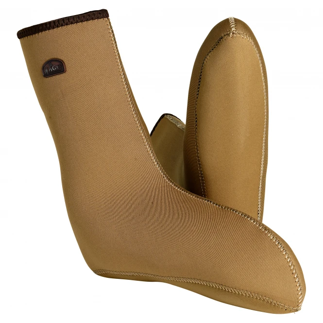 These neoprene socks have many functions i.e.: for extra warmth when wearing waders or worn alone with normal boots. Due to the foot shape, annoying kinks are avoided when worn with shoes. When night fishing, these socks can be worn while in your sleeping bag. 3 mm strong neoprene. Colour: beige. Material: 90% neoprene, 10% nylon. Lining: 100% polyester.