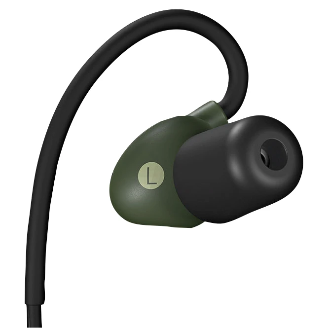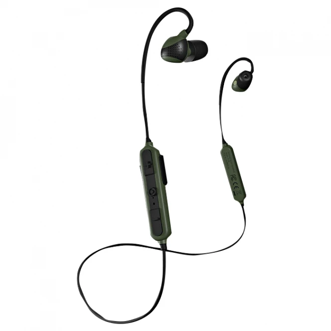 Active earplug with Bluetooth. Attenuation value (SNR): 33 dB. Powered by rechargeable 3.7 V Li-ion battery. Includes: Trilogy Foam earplugs in 4 sizes, a silicone earplug with triple flange, micro USB charging cable and storage box. Weight: 23.5 g.