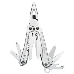 Stainless steel structure, lanyard ring, removable mounting clip. Tools: needlenose pliers, pliers, wire cutter, knife, serrated edge knife, saw, wood-/metal, ruler, 2 screwdrivers, crosstip screwdriver, bottle opener, can opener, wire stripper, carabiner. Length (closed): 9.7 cm, blade: 6.6 cm. Weight: 199 g. 25 years warranty.
