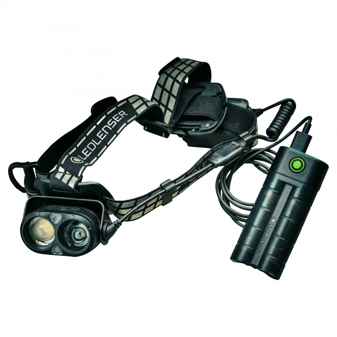 High-end headlamp with up to 4000 lumens. With Fusion Beam for individually adjustable flood and spot light, Bluetooth connection to smartphone for personalized settings. Maximum protection against dust and water (IP68). Weight: 374 g. Incl. battery, mounting clips, Bluetooth remote control, GoPro accessories adapter, helmet mount, Velcro straps, magnetic charging cable, tripod mount, USB power adapter, universal mount, extension cable.