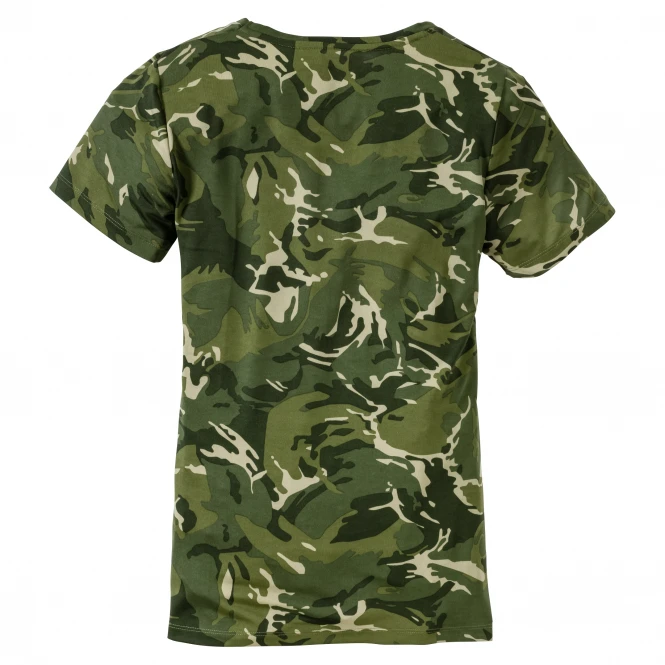 Breathable and modern ladies T-shirt with V-neck. The well-known camo pattern is a real eye-catcher. Colour: camo green. Material: 95% polyester, 5% spandex.
