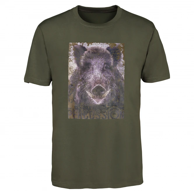 T-shirt made of 100 % cotton with wild boar motif. Colour: khaki. Material: 100 % cotton.