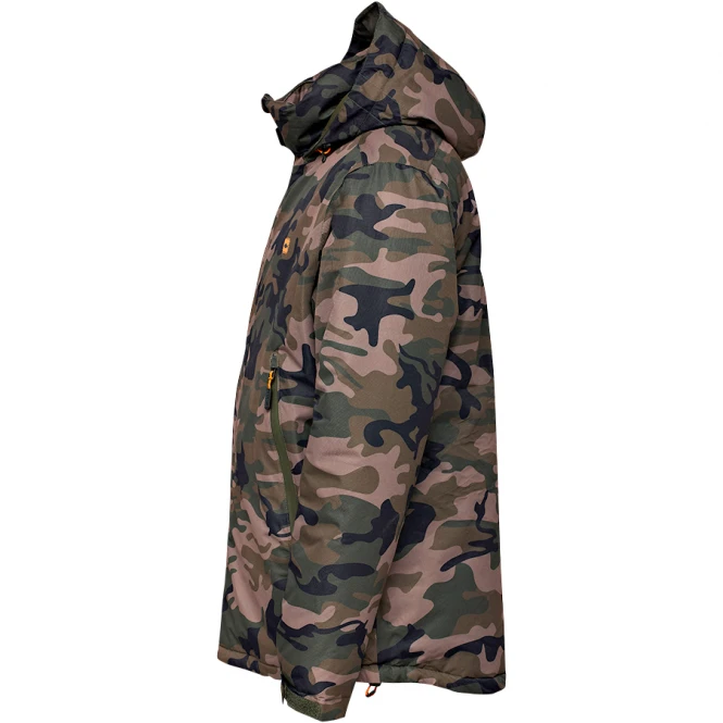 Waterproof, two-piece thermal suit with water-repellent zips, adjustable braids, sealed seams and adjustable hood. Water column: 8.000 mm. Material: 100 % polyester.
