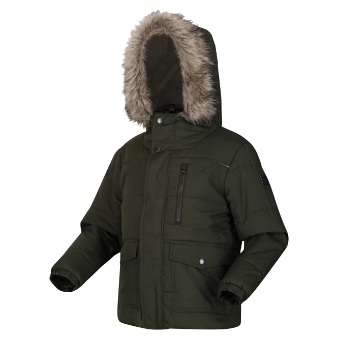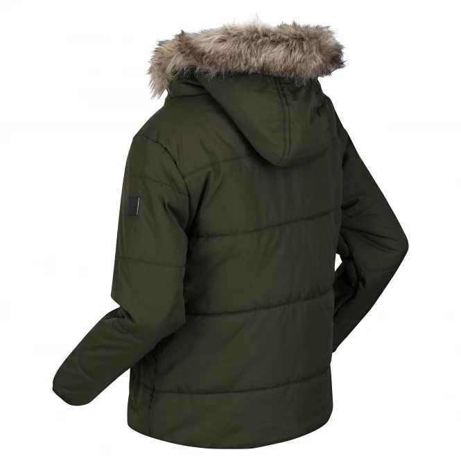 Made from quilted, waterproof micro-poplin fabric. With Thermo-Guard cold protection, hood with faux fur trim and reflective piping. Colour: dark khaki. Material: 100 % polyester.
