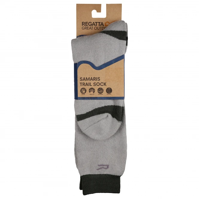 With these socks for men you are ready for any adventure. Warm and durable and made of a cotton and wool blend, these rubber boot socks will provide you with lasting comfort. To keep your feet fresh during the tours they are antibacterial treated. Colour: dark steel. Material: 40 % cotton, 40 % wool, 20 % polyamide.