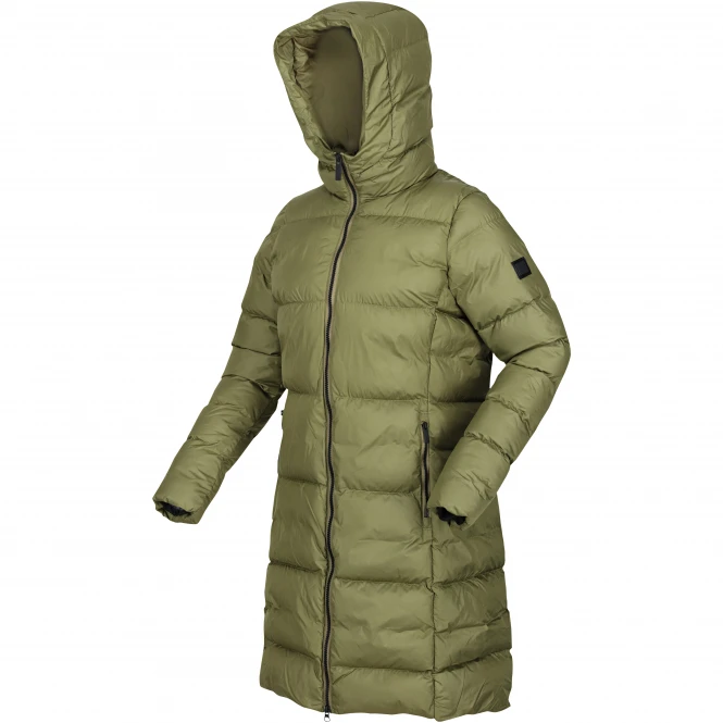 Feminine down coat that completes your winter outfit with style. Featuring a water repellent layer to protect you from rain and heavy recycled insulation for a cozy down feel without feathers. Features adjustable hood, 2-way front zipper, 2 deep zippered pockets, hidden elastic cuffs. Colour: capulet. Outer: 100% polyester, lining: 100% polyamide, padding: 100% polyester.