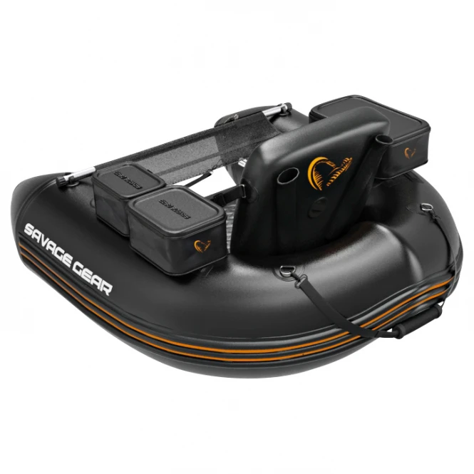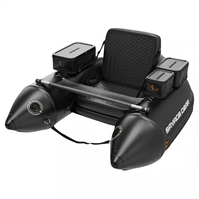 A sturdy belly boat made of 0.9 mm thick PVC material. The seams are heat sealed and reinforced. Equipped with 4 Protech Airvalves offset pontoon valves for pad mounting, 3 waterproof EVA side pockets, 1 waterproof EVA front pocket, adjustable footrest, backpack carrying straps, drawstring and protective pads on the bottom. Includes repair kit and foot pump. Weight: 12 kg, total length: 150 cm. Max. Load capacity: 145 kg.