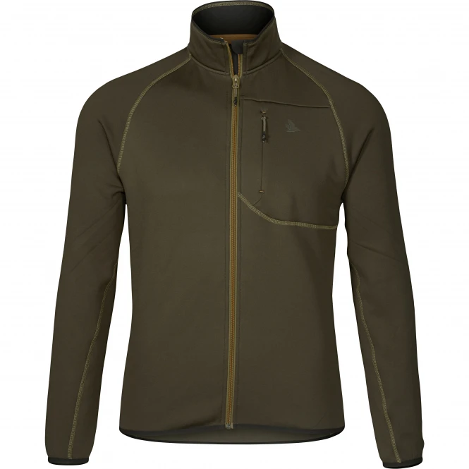 Also ideal as intermediate layer for active hunting. With one breast pocket, full-length zipper and an elastic band at the sleeve ends. Colour: pine green. Material: 51% polyester, 39% nylon, 10% polyurethane.