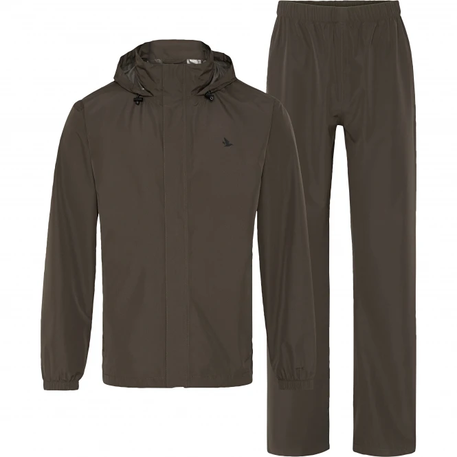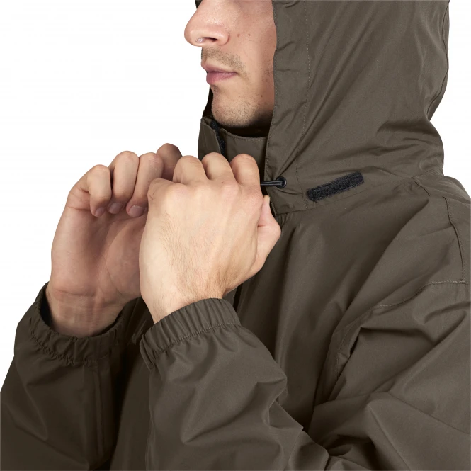 The Taxus rain set is a thin and very lightweight rain set that consists of a jacket and trousers and folds up in the left jacket pocket so that it can be easily taken anywhere. The rain set is equipped with a windproof and waterproof SEETEX® membrane so that, unlike conventional rain sets, no condensation forms when you move. The hood of the jacket is adjustable so that it sits well on the head in rain and wind. When the hood is not needed, it can be stowed in the collar. In this way, additional insulation is formed in the neck area at the same time. The jacket also has a wind flap and two spacious front pockets with Velcro fastenings, as well as elasticated cuffs to prevent rain or wind from getting into the sleeves. The trousers have an elastic waistband and an opening with Velcro on each side for easy access to the pockets underneath. Colour: brown.