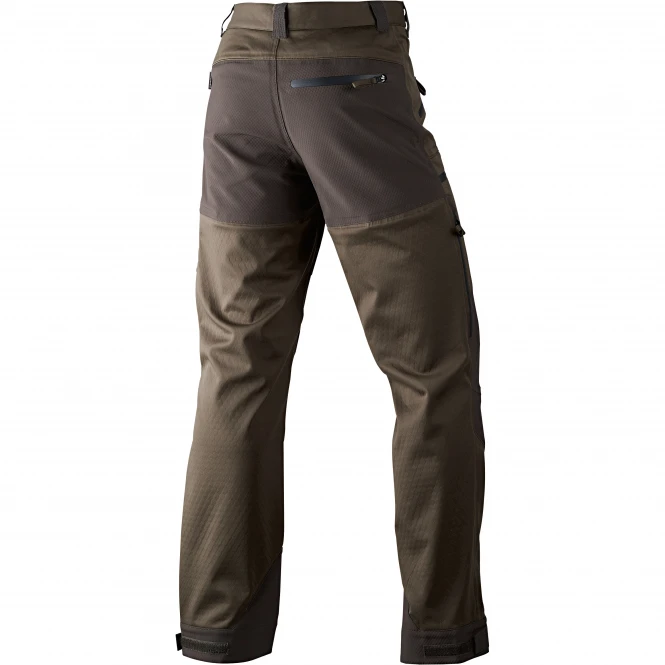 These trousers are made of an extremely flexible three-layer material in combination with the stretchy, wind- and waterproof SEETEX® membrane. In addition, the trousers have moulded knees made of particularly stretchy material as well as high placed thigh pockets. The trousers are particularly breathable. The waffle structure on the inside provides the necessary air circulation. The knees are equipped with zippers that allow additional ventilation. Colour: pine green. Outer material: 94% polyester, 6% elastane, lining: 100% polyester.