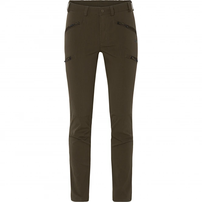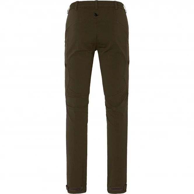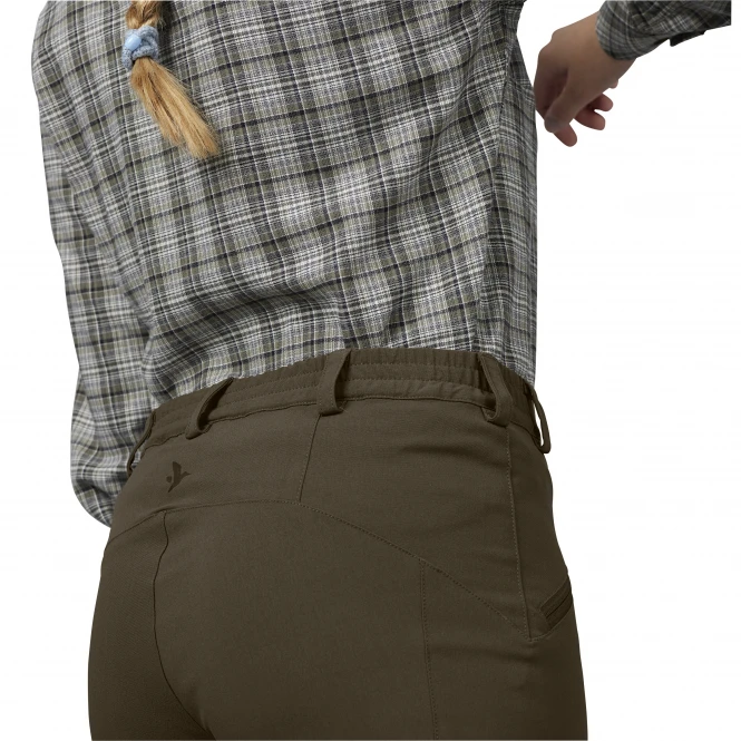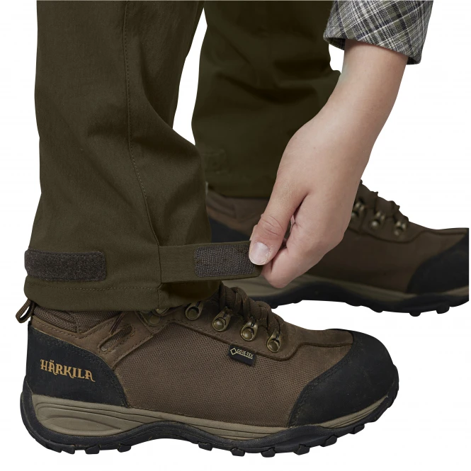 The Larch Stretch trousers are made from a stretch fabric and have a relatively close fit. The trousers offer an elastic waistband and thanks to the seams in the knee area, you can squat effortlessly without the fabric stretching. This makes the trousers very comfortable to wear and allows you maximum freedom of movement. Both front pockets and the thigh pockets are equipped with a zip so that nothing falls out when you move. In addition, the trousers are adjustable in the ankle area so that they fit well and no dirt can get into your boots. Colour: green.