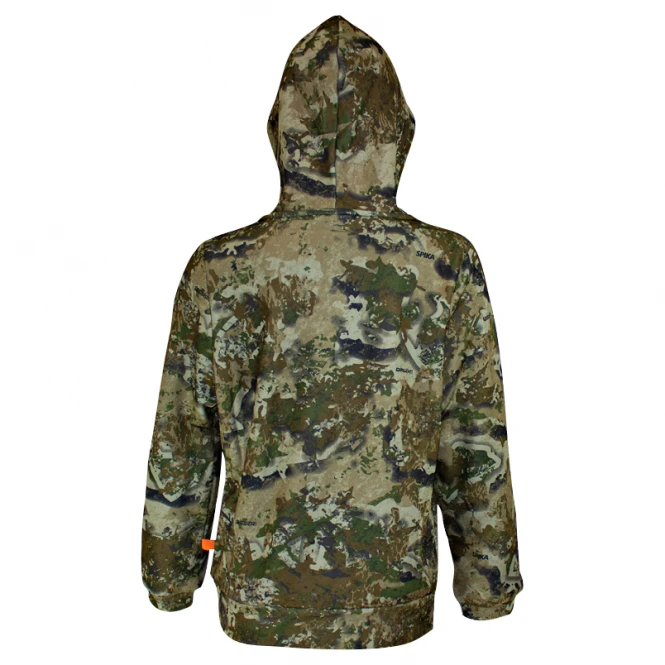 A children’s hoodie to feel good, no matter where it is to be used. The hoodie has a belly pocket and a hood with drawstring. Color: camou/orange. Material: 100% polyester.