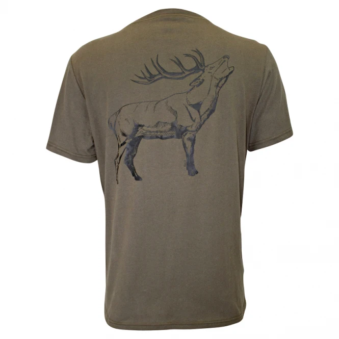T-shirt with pleasant wearing comfort, ideal for warm days. With Spika lettering on the chest and large deer motif on the back. Color: gray. Material: 100% cotton.