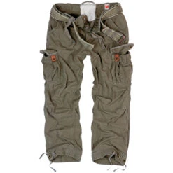 Comfortable vintage trousers made of super soft fabric in a trendy destroyed look, including a high-quality cotton waistband and many pockets with leather-covered buttons. Typical features of these cult trousers such as scuffs, discolouration and rusty buttons are intentional and a sign of the uniqueness of each Surplus Vintage Trousers Premium. Colour: olive. Material: 100% cotton. Contains non textile parts of animal origin (leather patches).