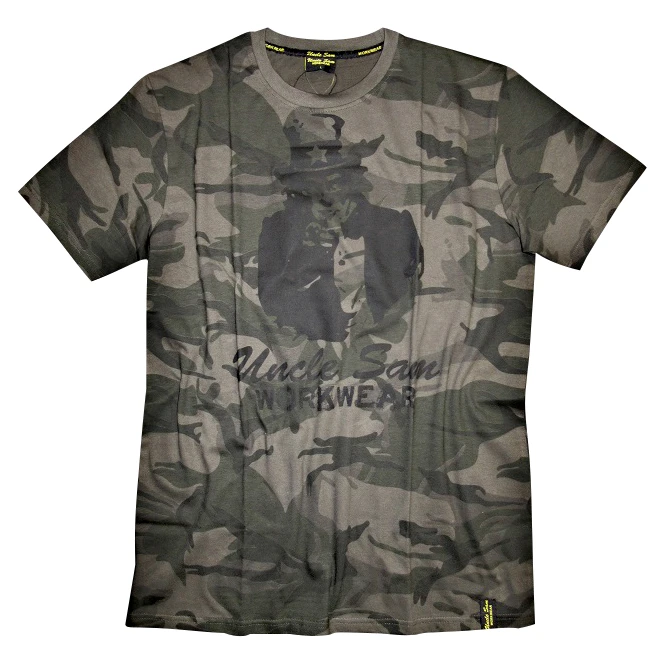 Modern round neck T-shirt with rib at the neckline and large Uncle Sam label front print. Colour: olive/black. Material: 100% cotton.