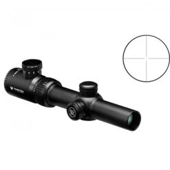 The battery powered Vortex V-Brite illuminated reticle is 11x dimmable, located in the 2nd image plane (eyepiece image plane) and provides good performance even in very low light conditions. Ideal for all hunters, shooters and those who want to rely on their Riflescope even in very low light. For daylight, the illuminated reticle is only suitable to a limited extent.