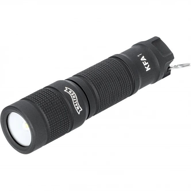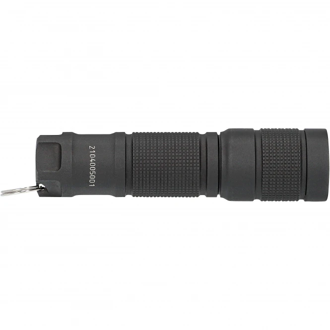 Handy keychain flashlight with 3 light levels (5/25/110 lumens), on/off and brightness by rotary knob. Waterproof (IPX8). Light range max.: 14 m. Max. burn time: 9 h. Length: 6.7 cm. Weight: 29 g. Incl. 1.5 V AAA batteries.
