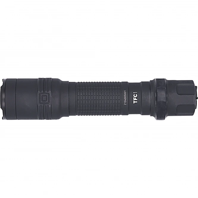 With 4 light levels (5/50/300/1,400 lumens) plus stroboscope and beacon (emergency flash). Waterproof (IPX8). Light range max.: 220 m. Max. burn time: 30 h. Length: 14.5 cm. Weight: 130 g. Incl. CR123 batteries (3V lithium). Compatible with Li-ion battery 18650 and Li-ion battery 21700.