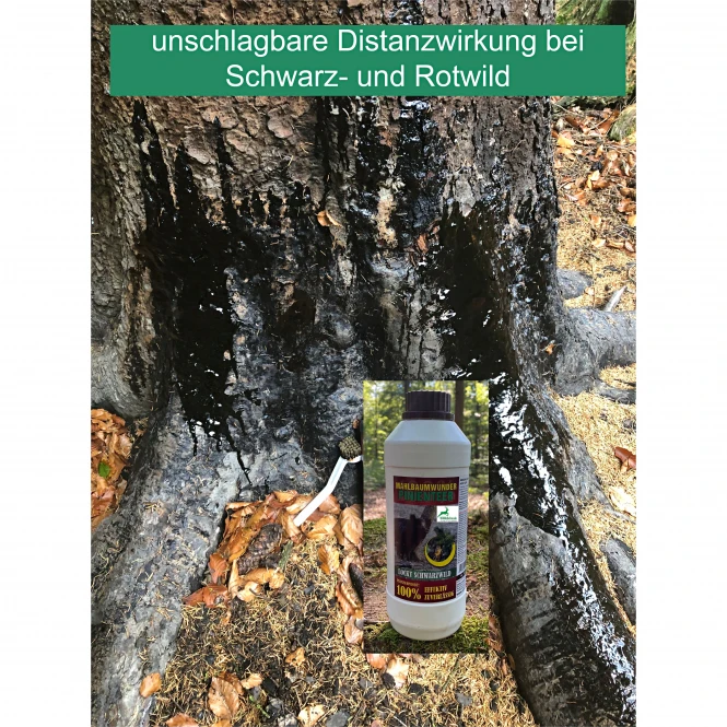 Attracts red and wild boar over long distances. Suitable trees should be coated at a height of approx. 50 – 100 cm. The coating should be repeated every 2 – 3 weeks. Composition: Quality pine resin and ingredients with disinfecting properties. Contents: 1 litre.
