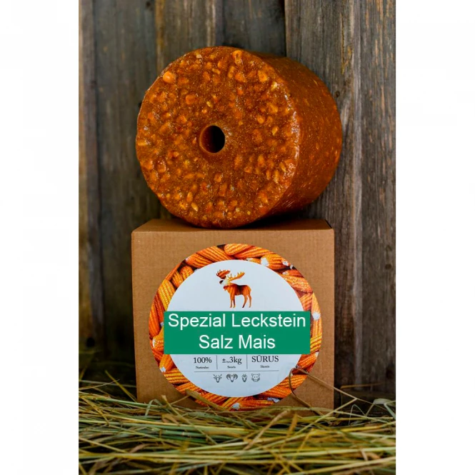 Magnet for all game species (especially for red, fallow, sika, moufflon, roe deer and chamois) Composition per 100 g: Glucose syrup 51.00 g, corn grains 36.36 g, sea salt 12.64 g.